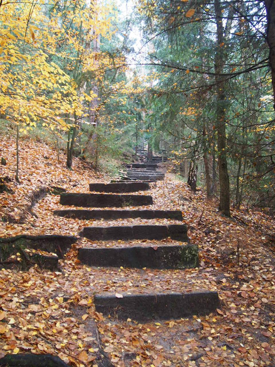 Počasí bylo docela slušné. Svého čtyřkolového oře jsme zaparkovali na parkovišti v Příhrazech u autokempingu přímo pod skalami.No a čekali nás nekonečné schody