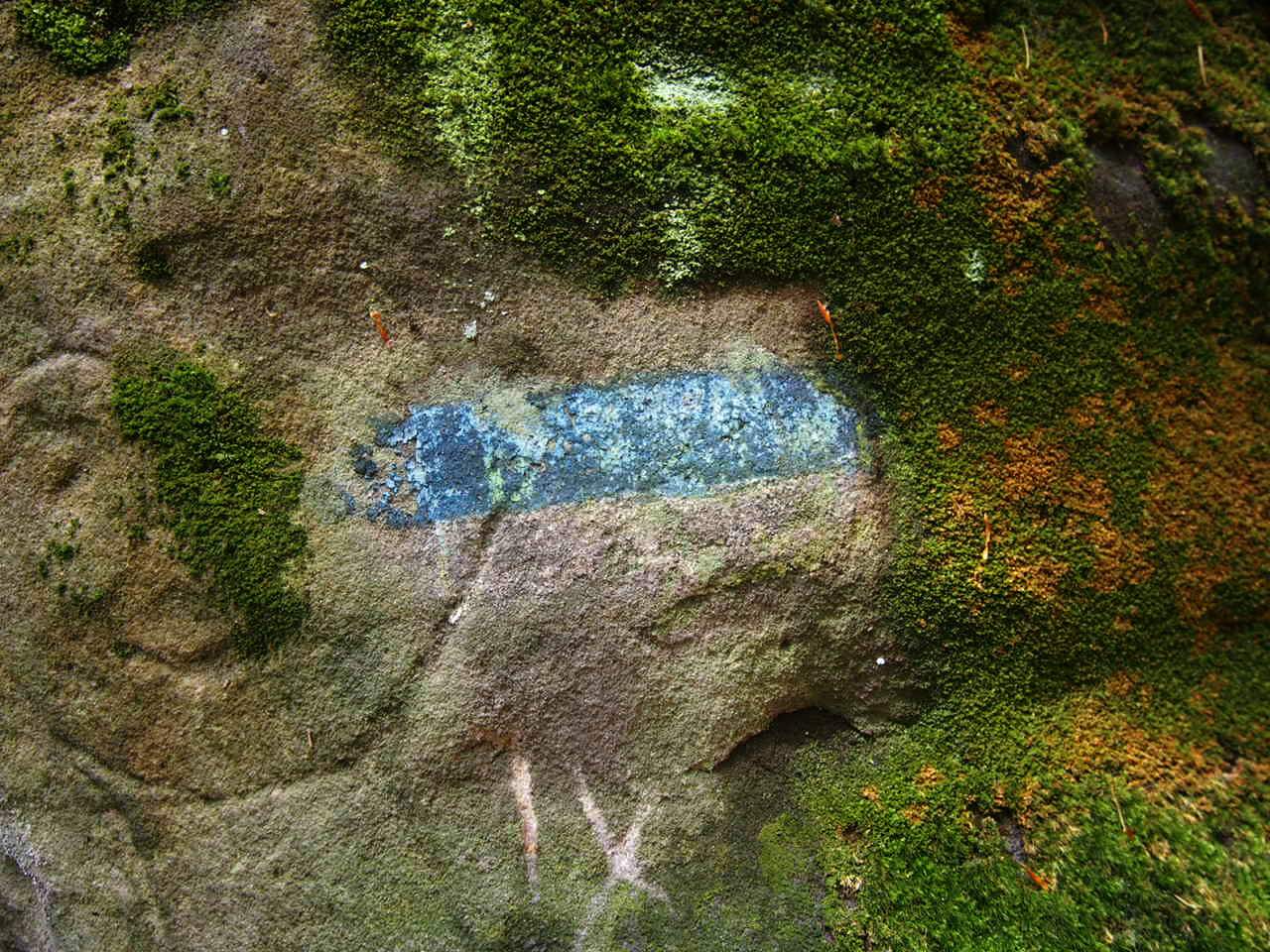 V rokli se najdou i památky na trampy... ohniště, vytesaný kříž ... nápisy a pod.