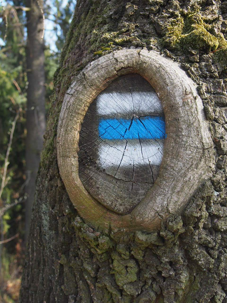 Vyrazili jsme po modré značce ... po chvíli jsme našli opravdu zajímavou značku. Poviná fotečka a honem pryč od turistického ruchu. Za chvíli jsme dorazili nad Babí rokli a začali slézat dolů do rokle.